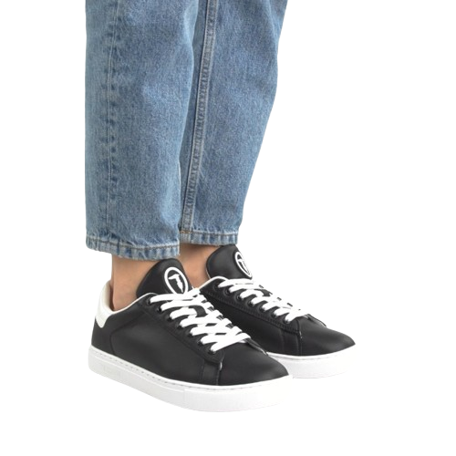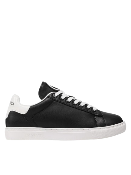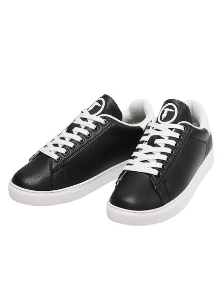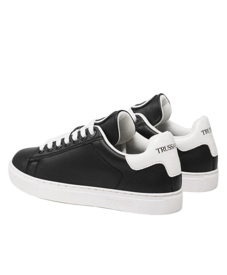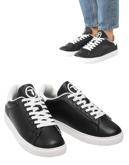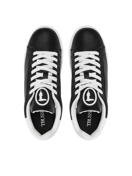 Nowoczesne buty marki Trussardi w kolorze czarnym z białymi akcentami to idealne połączenie elegancji i sportowego luzu. Wykonane z wysokiej jakości materiałów, gwarantują komfort noszenia i trwałość. Doskonale sprawdzą się zarówno do codziennych stylizacji, jak i w bardziej casualowych zestawach. Subtelne logo Trussardi dodaje im wyjątkowego charakteru.